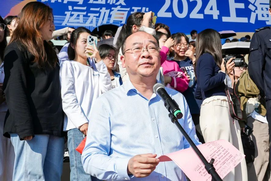 上海大学党委副书记、副校长胡大伟向所有参与筹备此次运动会的师生表示衷心的感谢,并鼓励全校师生积极参与各项比赛,享受运动带来的快乐与成就感,共同创造属于上海大学体育节的精彩。