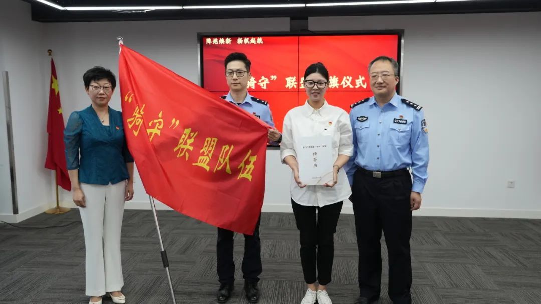 会上组建了全区首个“骑守”联盟队伍,为三位新就业群体颁发“移动网格员”聘书。该队伍由三名群众工作经验丰富、业务素质过硬的民警和三名街道社工组成,队伍成员将结合各自工作职能,精准提供系列暖心服务。
