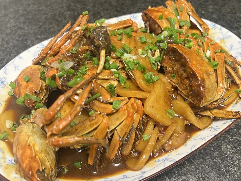 当这道螃蟹炒年糕端上桌时,色香味俱全的模样简直让人垂涎欲滴。螃蟹的鲜美与年糕的软糯相互交融,口感丰富,层次分明。一口下去,先是螃蟹的鲜香在口中散开,接着是年糕的Q弹和软糯,让人回味无穷。这道菜的精髓,在于年糕吸收了螃蟹的鲜美汤汁,变得既有海鲜的浓郁,又不失自身的米香与弹牙感,螃蟹与年糕的结合,使得口感层次更加丰富,甜、咸、鲜交织在一起,每一口都是惊喜。