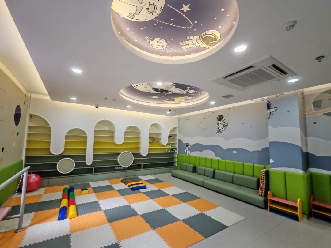 会上,举行了门诊加固流程再造项目竣工和公共卫生楼的启用仪式。改建后的公卫大楼一楼开设儿童康复中心。以绿色森林为主题的公卫大楼除了儿保门诊、接种门诊等常规科室,还打造了一间太空主题的亲子活动康复室。儿童康复中心的西医康复主要针对运动发育落后、智力发育异常、语言发育迟缓、脑瘫等儿童进行初步诊断和评估,并进行相应的康复训练;中医康复主要以小儿捏脊的治疗手法治疗脾胃功能虚弱、免疫力低下等为主。
