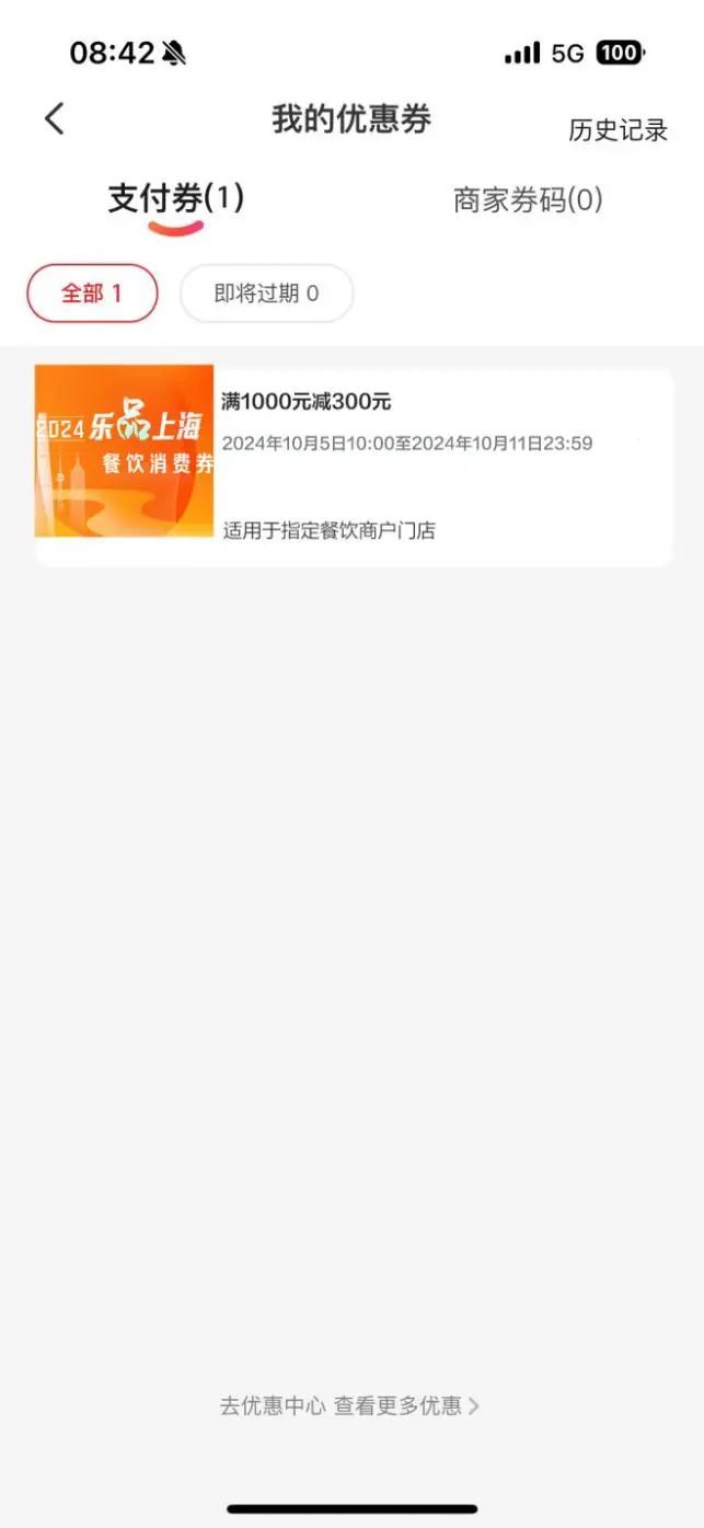 用户可在支付宝首页右上角“卡包-优惠券”查看已领消费券。