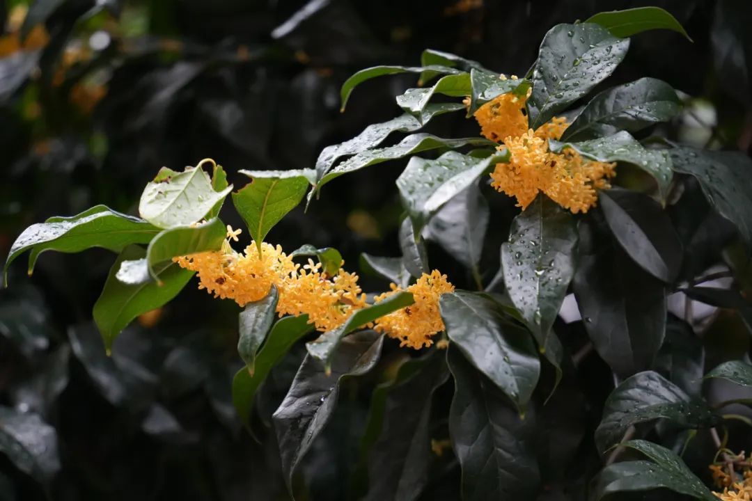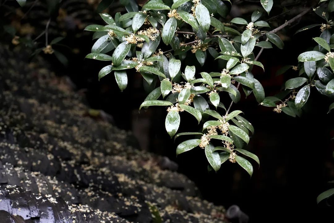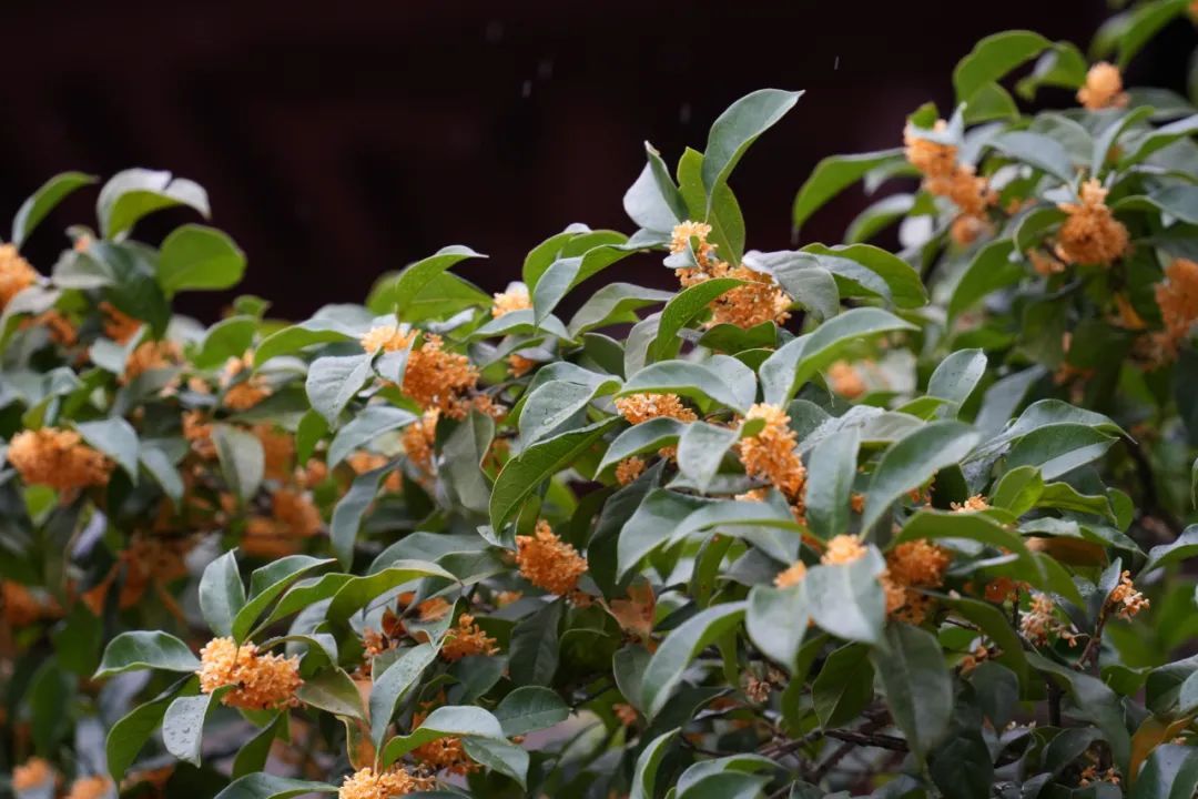 桂花于细雨中绽放,