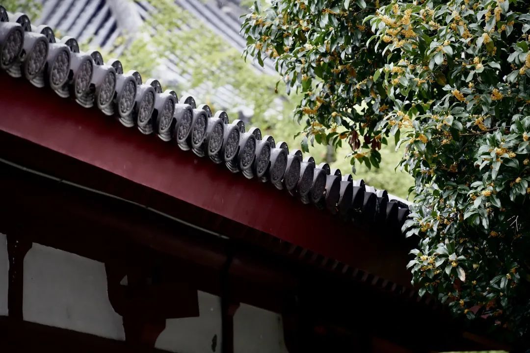 步入云翔寺,仿佛穿越千年时光,秋雨在朱门黛瓦的映衬下,被赋予了具体的形态。这座始建于梁天监四年的古刹,以唐风复建,刚劲雄健中不失气宇恢宏,古朴典雅间透露着现代工艺的巧妙。