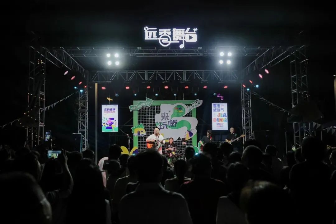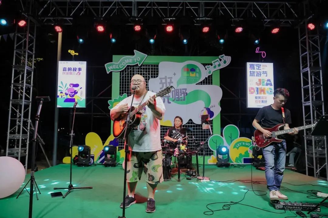 现场,嘉定本土乐队“鑫民谣”为观众带来了《我爱你中国》《成都》《后来》等二十余首金曲。“还记得你说家是唯一的城堡,随着稻香河流继续奔跑......”一首《稻香》以其欢快的旋律迅速点燃了现场的气氛。
