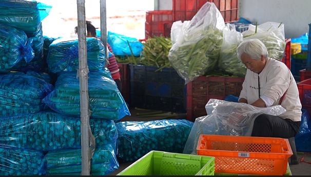 眼下,正值莲藕、茭白等农产品上市之际。练塘镇芦潼村的上海佳欣茭白专业合作社内一片忙碌的场景,工作人员正忙着收割、分拣、打包……一辆辆满载着练塘特色农产品的车辆来回穿梭,把新鲜蔬菜送到市民餐桌。