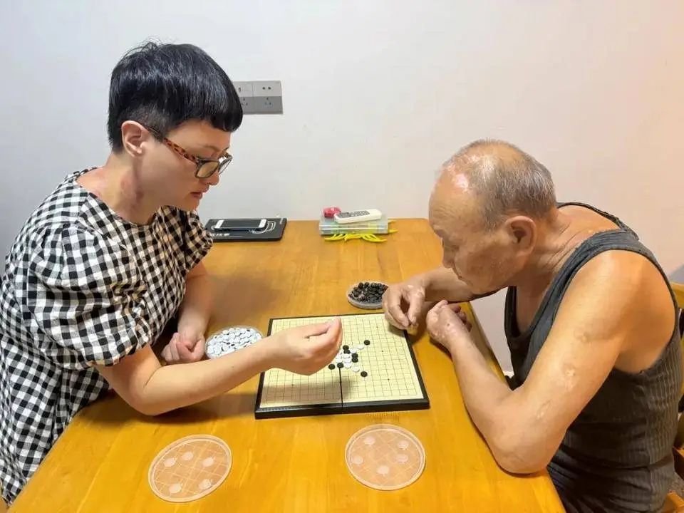“外公和妈妈都是下棋的一把好手,兴致来了就会互相来一把。”拍摄者周文菁说。照片之中父女对弈,在那个悠长而明媚的夏日午后,父女俩围坐于棋盘之畔,展开了一场不仅仅是“火花四溅”的对弈,更是一次心灵深处温情脉脉的交流。