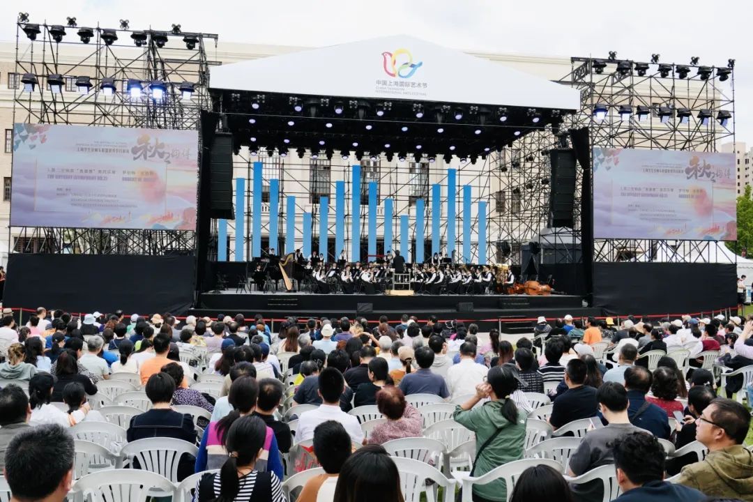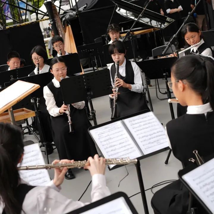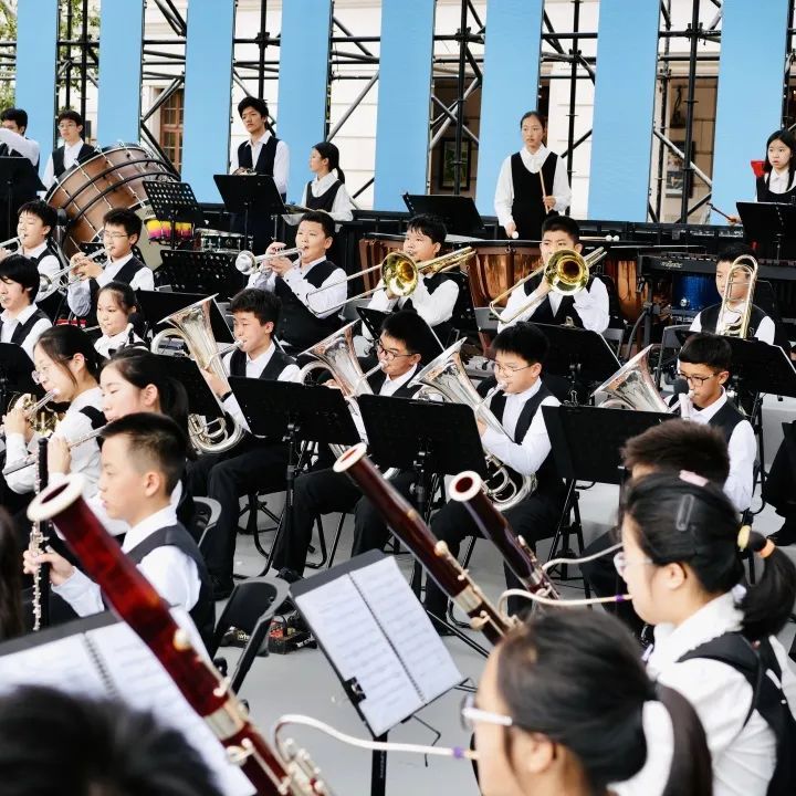 在上海城市草坪音乐广场上,虹口区青少年活动中心管乐团亮相第二十三届中国上海国际艺术节上海学生交响乐联盟优秀节目展演。