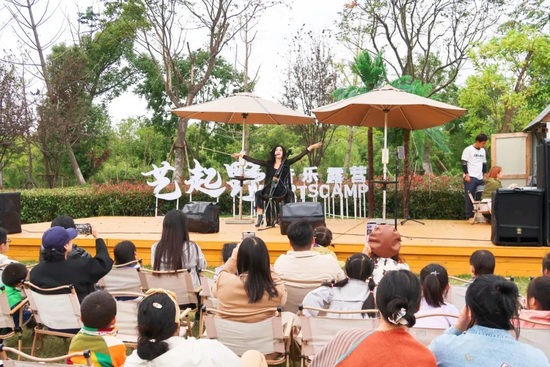 日暮西沉,音乐响起,一场公益音乐会开始了。来自克罗地亚的著名大提琴演奏家安娜·鲁兹内尔(Ana Rucner)带着造型炫酷的镂空电提琴走上舞台,可狂野可柔情、可古典可摇滚的演奏把现场打造成一个独属于音乐的世界,让观众仿佛置身于风景秀丽的天然剧场。音乐家还与现场观众频频互动,氛围感拉满。来自嘉定的成女士兴奋地告诉记者:“这里环境太棒了,美妙的音乐让人瞬间放松下来,非常适合周末带着家人朋友一起来玩。”