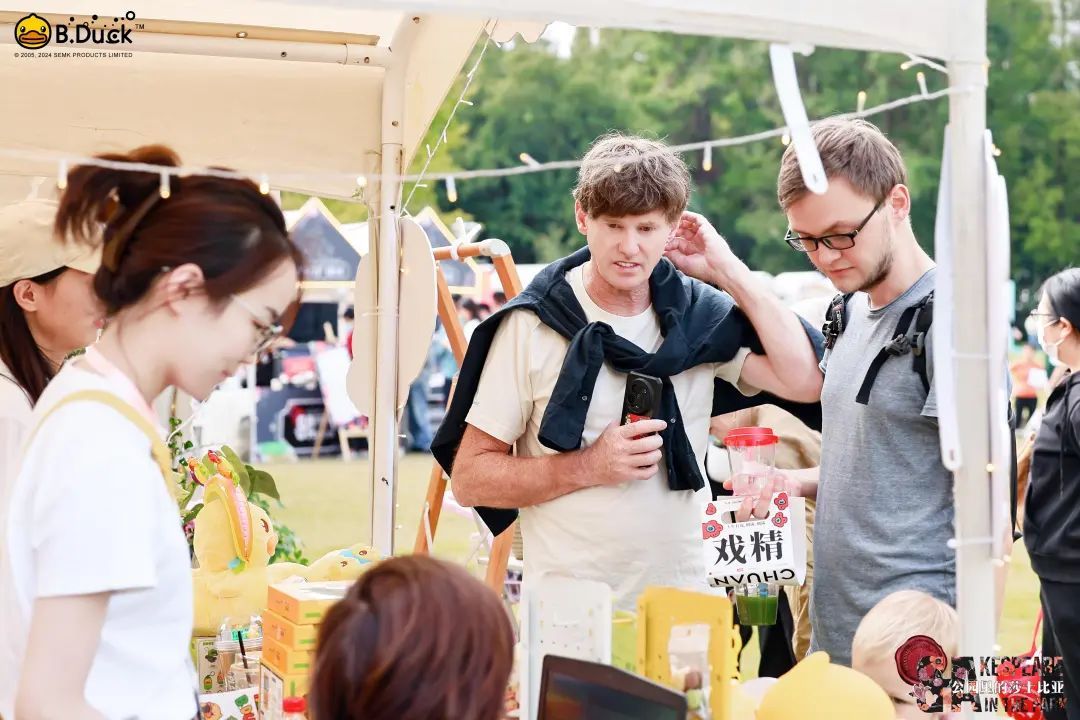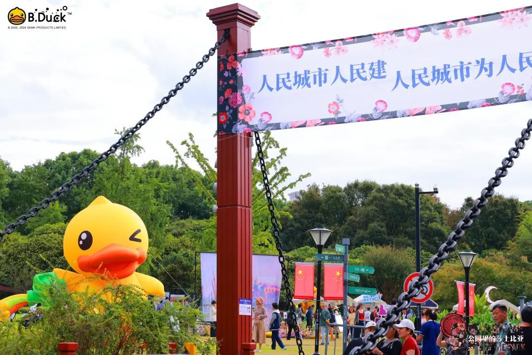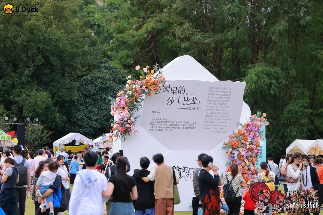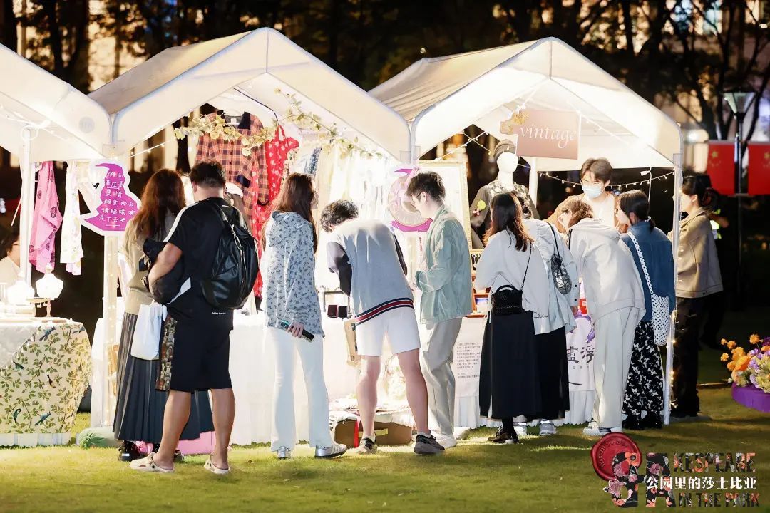 集观赏、购物、娱乐于一体的体验,不仅拉近了观众与戏剧艺术的距离,也有效地促进了文化与商业的交流,使“公园里的莎士比亚”成为了一场撬动“戏剧+”文商旅融合新场景的文化盛事,凭实力吸引了15万观众入园游玩。八大板块的主题装置不仅拉满打卡氛围,还为“散落式”的即兴演出提供了完美的舞台,游客能够随时与表演者互动,体验“身临其境”的戏剧魅力。装置周围与主题相呼应的莎翁艺术市集摊位,包含了从传统工艺到当代潮流的各类文创和美食,富有创意的同时也不失烟火气。