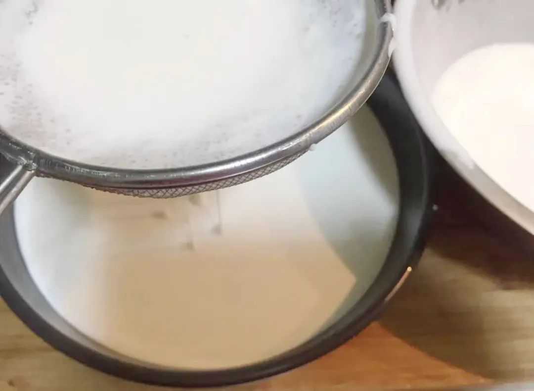 把米浆过筛,确保米浆里没有未溶解的颗粒。