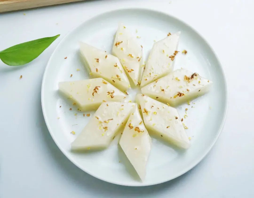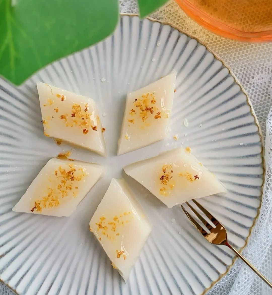 桂花凉糕又名拉糕,是江南地区的一种糯米糕点,也是深受上海人喜爱的中式点心之一。