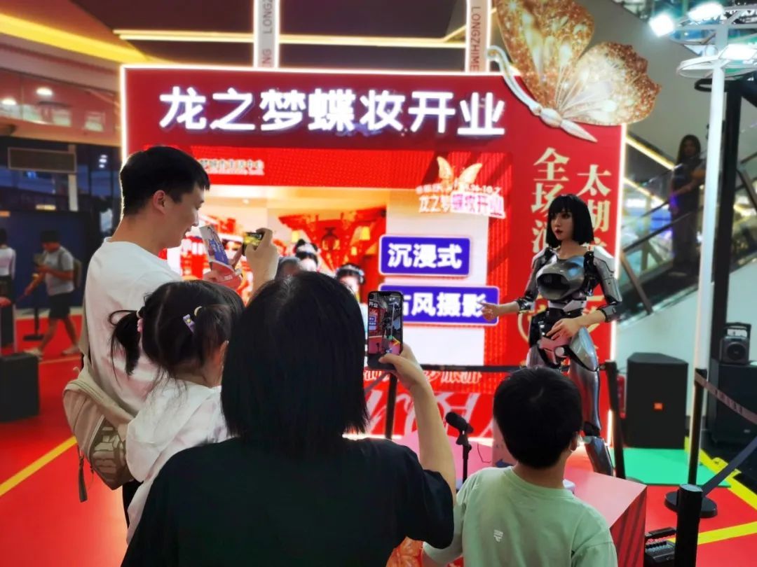 记者了解到,当前,数字化和智能化正成为龙之梦创新发展的关键词。例如,人形机器人“小柒”常驻龙之梦,不同于传统机器人,“小柒”具备真人质感的仿生皮肤,能模仿人类的动作和微表情,历史、文学、艺术、科技等相关知识都能对答如流。此外,龙之梦还在B2层新增裸眼3D全息投影展陈,优化购物氛围;并以蝶妆开业为契机,在场内外布置智能动态蝴蝶。