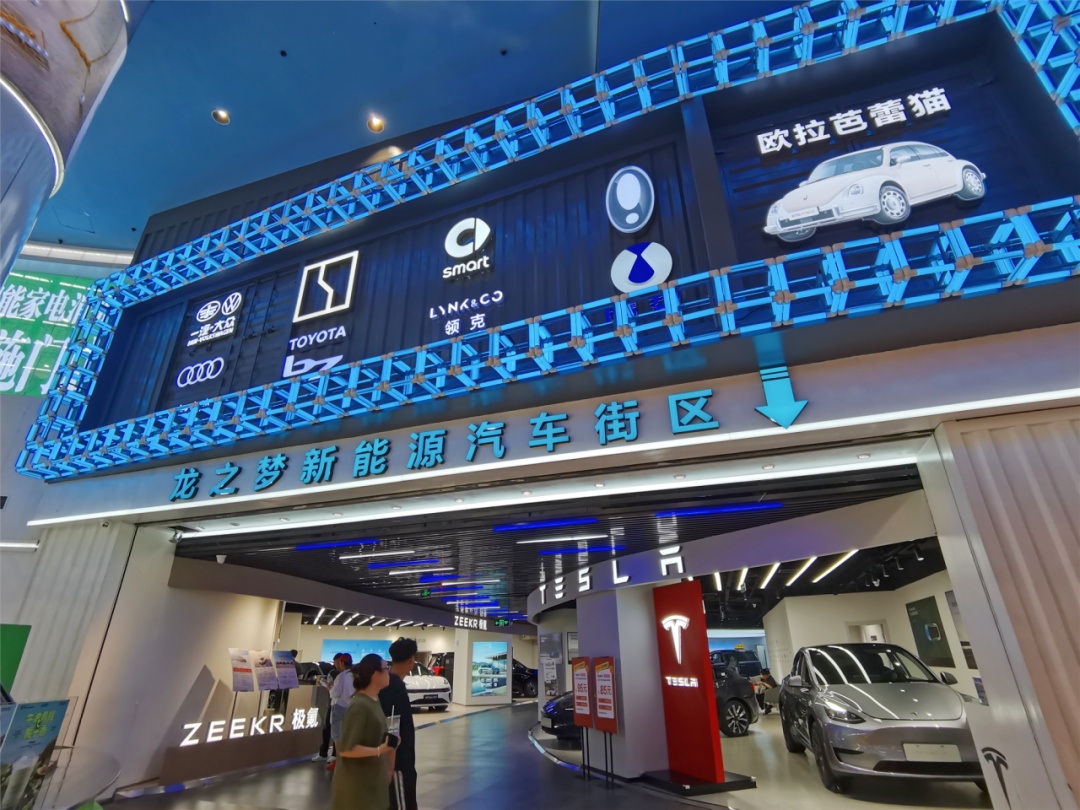 作为龙之梦的创新之举,其于2021年起,基于对国家政策和消费市场的研判,率先打造的新能源汽车街区,受到市民好评。街区集聚20多个汽车品牌,可提供展陈、销售、体验、科普等服务。经过3年发展,街区形成品牌效应,吸引众多知名汽销品牌前来龙之梦举办首发首秀。