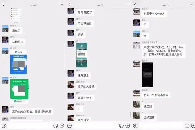 据了解,主播们是用一款名为WePoker的软件进行赌博,组织者在App内开好房间,然后将房间链接发布到微信群里吸引参与者进入。根据微信支付宝交易转账截图来看,一局流水就高达上百万。