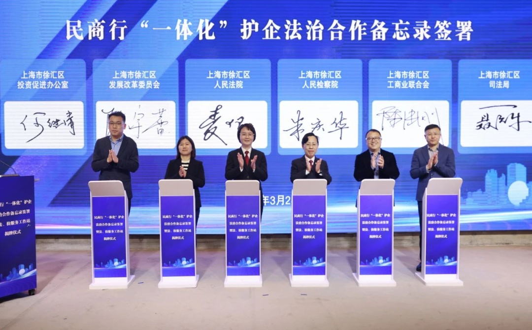 同时,通过落实《民商行“一体化”护企法治合作备忘录》,徐汇区六部门充分发挥民事、商事、行政的专业优势,共享企业痛点堵点信息。一方面,通过前端精细化诉源治理,依托基层商会开展商事巡回调解、支持起诉等工作,探索多元化纠纷解决机制。另一方面,建立长效监管科学指导机制,通过联合制发检察建议、司法建议、发布典型案例等,对前端发现的企业制度漏洞、矛盾隐患进行“法治体检”,持续擦亮徐汇法治化营商环境的金字招牌。