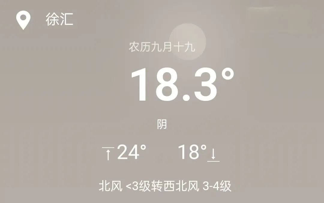 10月23日(周三):晴到多云,15~20℃