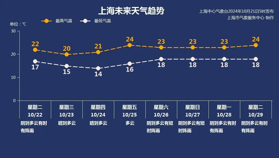 本市22日前后受冷空气影响,有大风降温天气,23—25日转为高压控制,天气晴好。其中23—24日最低气温市区只有14~15℃,大家早晚要注意调整着装。
