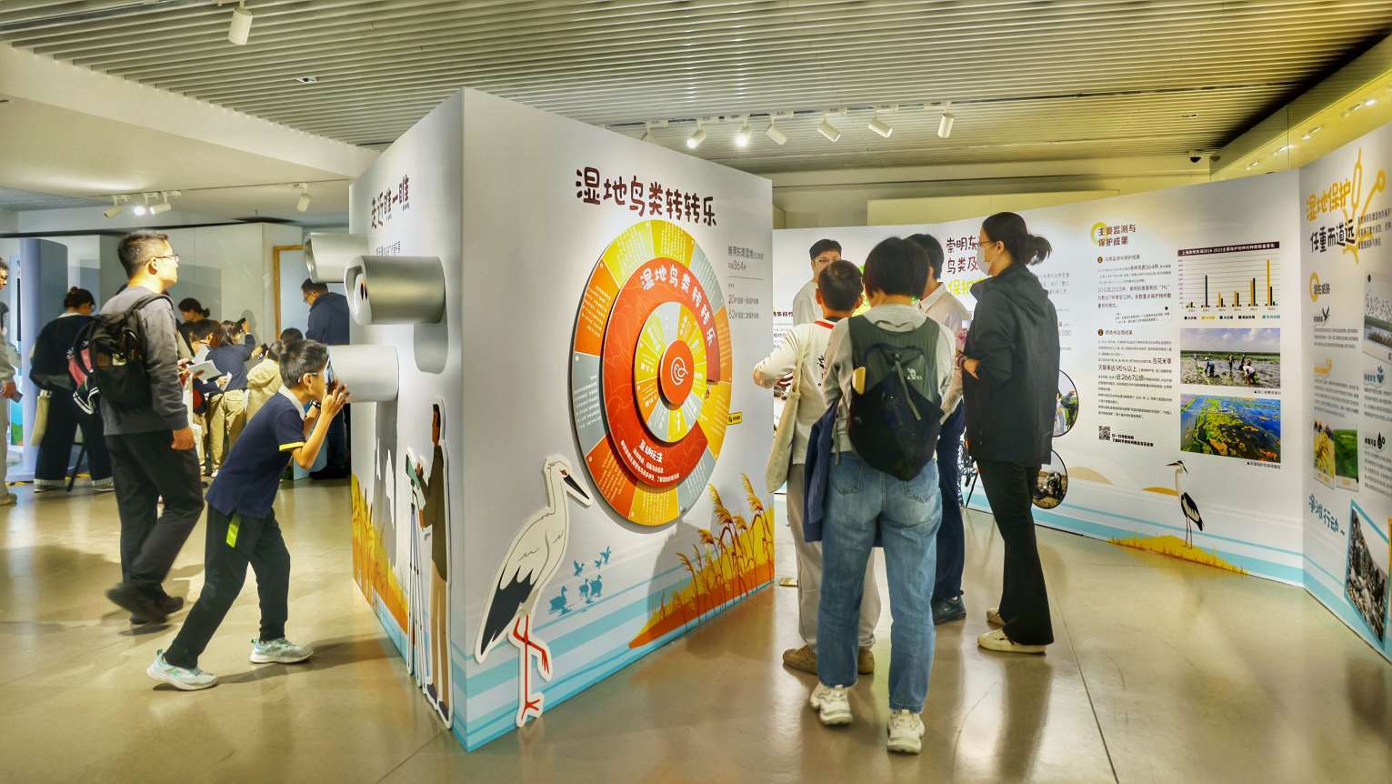 正值第十届上海国际自然保护周,本次展览以“城市自然守护者”为主题,联合来自上海海洋大学、上海市崇明东滩鸟类国家级自然保护区及上海长江河口湿地生态系统国家野外科学观测研究站等多个从事沪上生态保护的顶尖科研团队,讲述科学家如何在城市中开展自然生态研究和保护的故事,为市民奉献了精彩纷呈的科普盛宴。