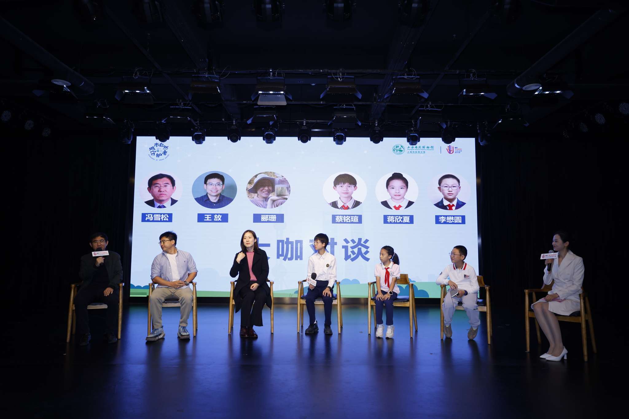 展览开幕现场还特别邀请了参与展览内容策划的科学家们与来自上海自然博物馆“青少年科学诠释者”的学生代表们开展面对面对谈,共同探讨新时代背景下全民参与的城市自然保护与生态修复工作。