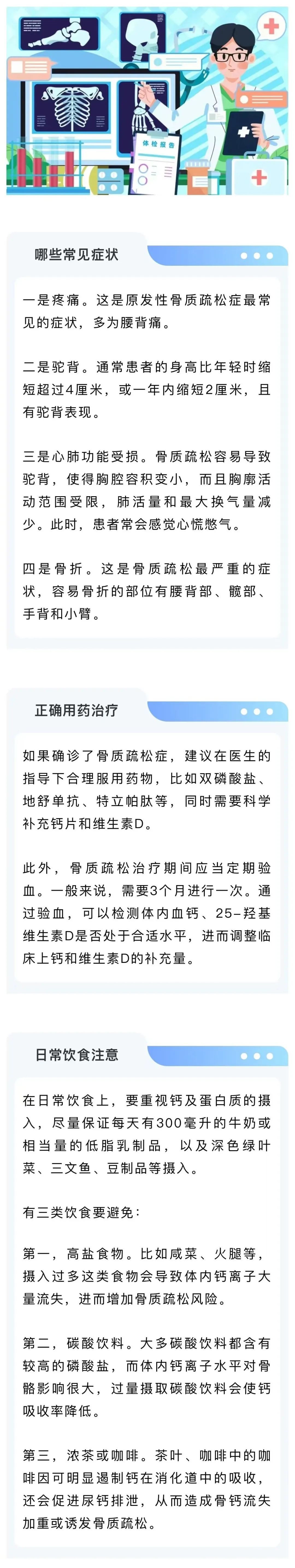 骨质疏松症已经成为我国中老年人群的一大健康问题,很多人误以为这是自然老化现象,其实,骨质疏松症是可诊、可治的。
