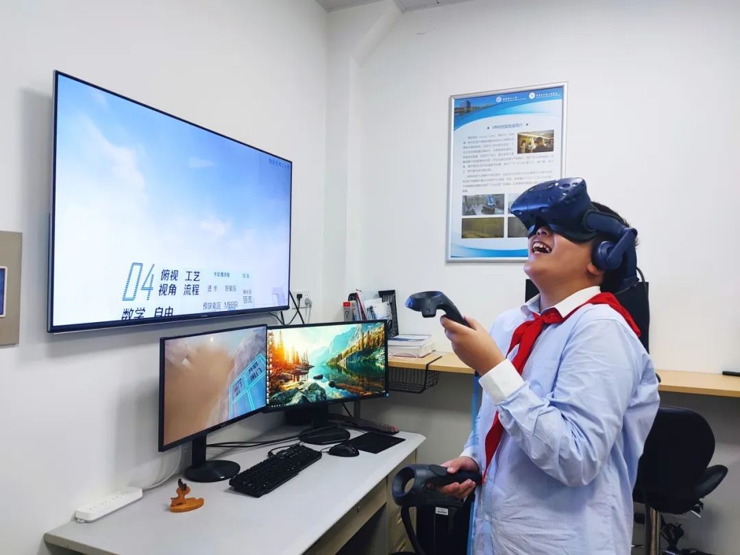 在“河颜悦色”团队志愿者的带领下,孩子们共同参观了资源与环境专业实验教学中心的“VR科创实验室”,身临其境感受污水变成清泉的过程。“这个活动很有意思,我觉得自己乐在其中,也学在其中!”一位小学生表示。
