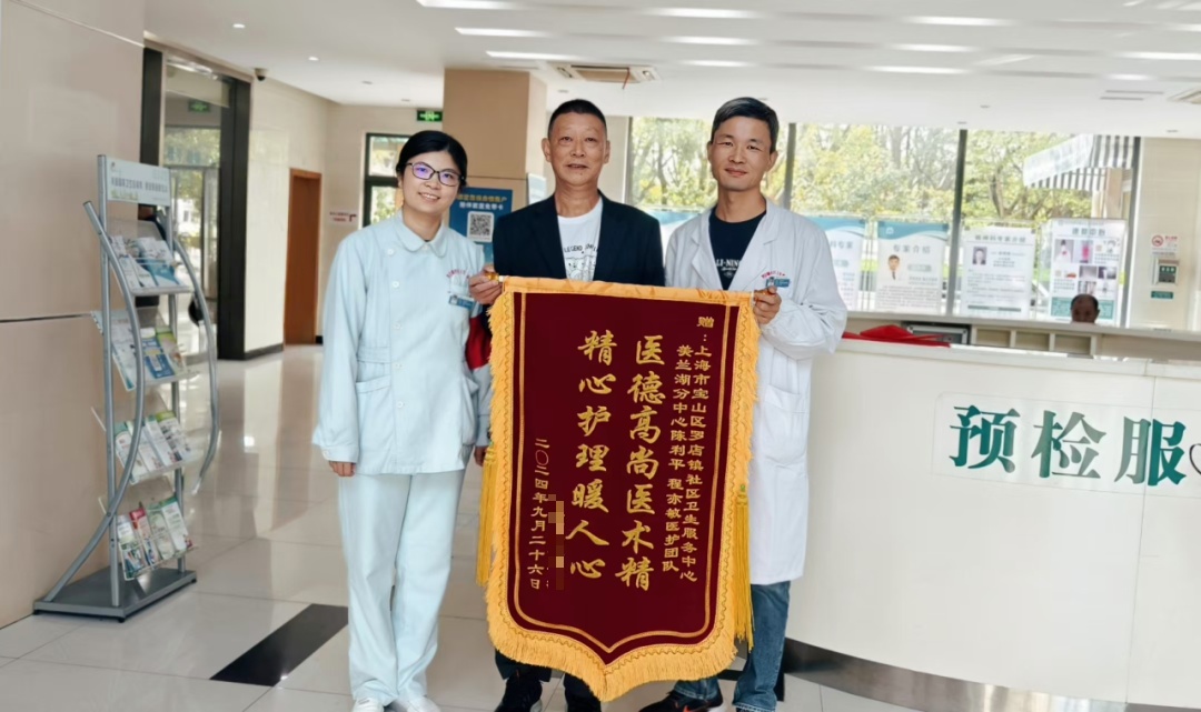 近日,李先生满怀感激的将一面写有“精心护理暖人心,医德高尚医术精”的锦旗送到了宝山区罗店镇社区卫生服务中心美兰湖门诊医护人员的手中,感谢全体医护人员在门诊就诊期间争分夺秒的救治和无微不至的护理。