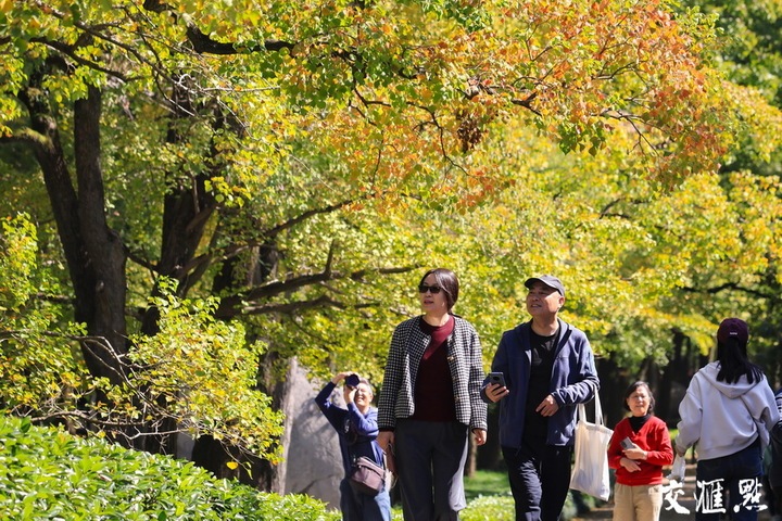 10月20日,金秋时节,南京明孝陵景区色彩斑斓,秋景如画,吸引许多游客前来游览。苏阳 摄