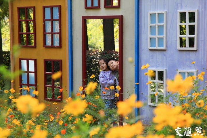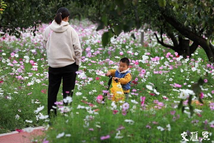 10月19日,淮安市古黄河生态园格桑花、硫华菊、百日菊盛开,游人徜徉花海乐享秋日时光。周长国 摄