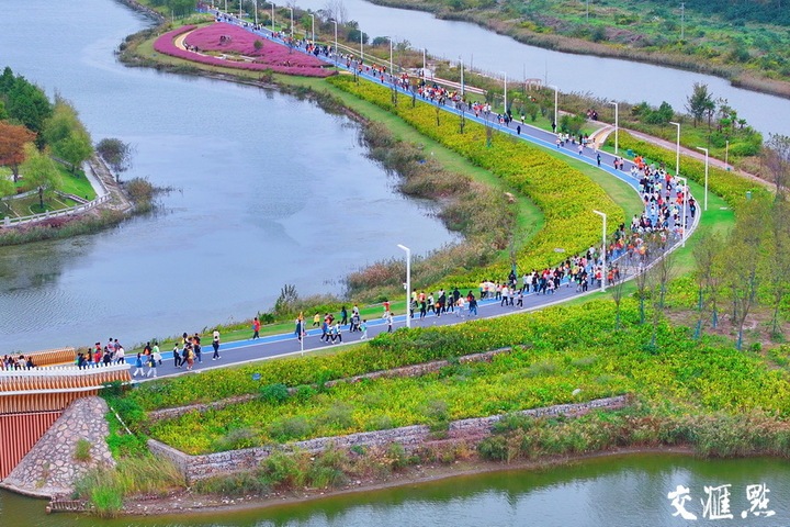 10月20日,如东县小洋口旅游度假区,来自南通大学的一千多名中外大学生参加了5公里欢乐跑,在色彩斑斓的大自然中享受运动带来的快乐。薛冯 吴树建 摄