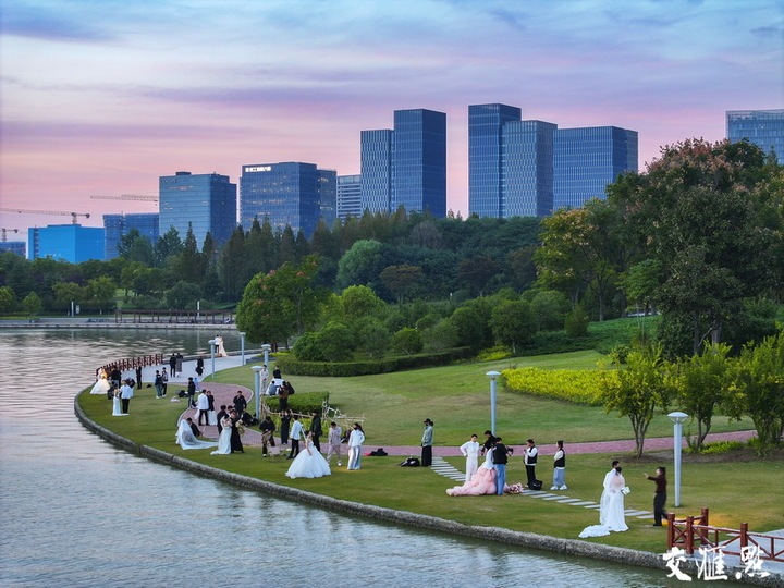 10月19日,徐州市云龙区大龙湖水光潋滟,成为众多婚纱摄影的“网红”取景地。高刚 摄