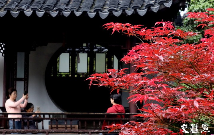 10月20日,苏州留园内秋景斑斓,美不胜收,吸引众多游客前来观赏游玩,乐享金秋时光。 杭兴微 摄