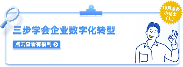 服务小贴士精选企业服务热门主题,提供最实用的干货知识和解决方案,助力企业加速成长。首期聚焦企业数字化,让您三步学会转型,更有宝藏俱乐部成员发放专属福利,快来查收!