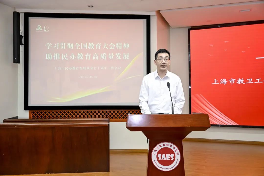 10月18日下午,学习贯彻全国教育大会精神助推民办教育高质量发展暨上海市民办教育发展基金会成立十周年工作会议在上海市教育科学研究院召开。上海市教卫工作党委副书记、市教委副主任顾红亮出席会议并讲话。上海市教育发展基金会理事长王荣华、上海市民办教育协会会长高德毅等进行微论坛交流,上海市民办教育发展基金会理事长陈立民作工作报告。三位代表在会上进行交流发言,会议还对在民办教育领域作出突出贡献的相关单位授牌。