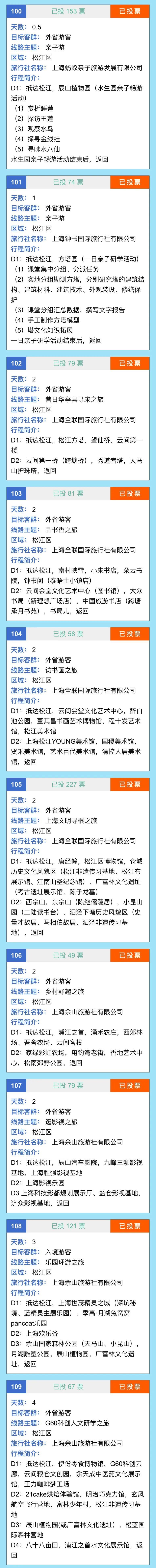 3.为松江区编号100-109的文旅线路和编号579-619的文旅点位投票。