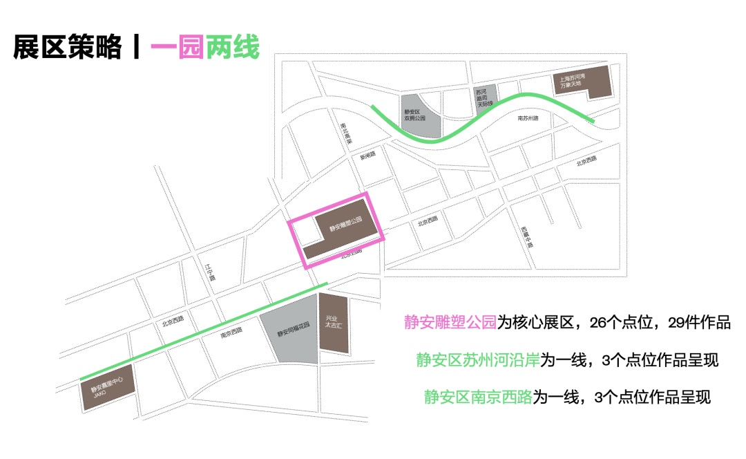 静安国际雕塑展首次尝试与网易云音乐合作,根据“一园两线”的展览布局为观众精选了一些看展专属歌曲,整理成了音乐地图歌单。