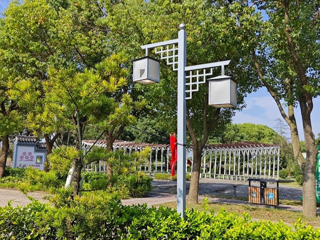 菖梧村的路灯以独特的亚克力外罩和原木色灯杆组合而成,十分雅致。然而,工作人员在日常夜间巡查中发现,部分村内主干道上的路灯存在外罩被蜘蛛网缠绕、破损以及个别灯泡损坏等问题,导致路灯昏暗不明。