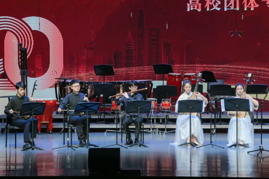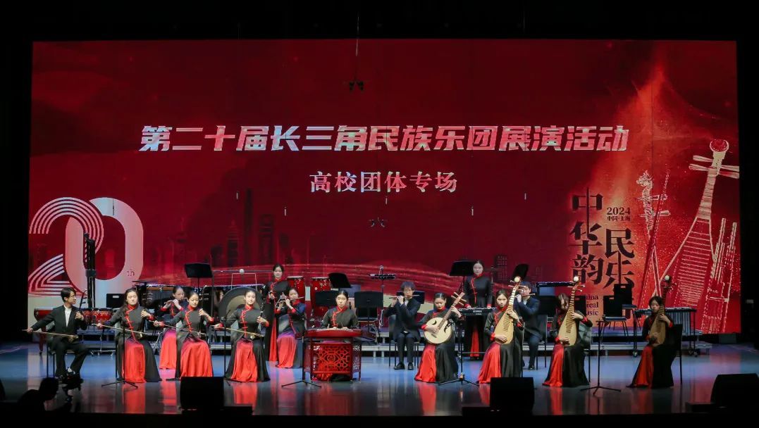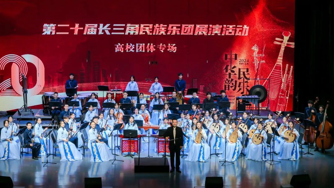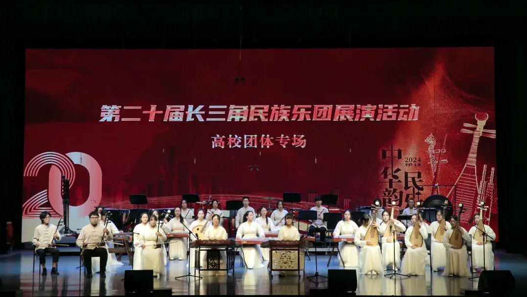 当晚,来自北京航空航天大学、浙江音乐学院、复旦大学、上海师范大学等15所高校民乐团还在我校艺术中心开展“中华韵 民乐声”第二十届长三角民族乐团展演活动。从古典名曲到当代创作,从丝竹之音到管弦齐鸣,展演上的每一首曲目都蕴含着对中华文化的深刻理解与致敬,每一段旋律都讲述着属于这个时代的动人故事。
