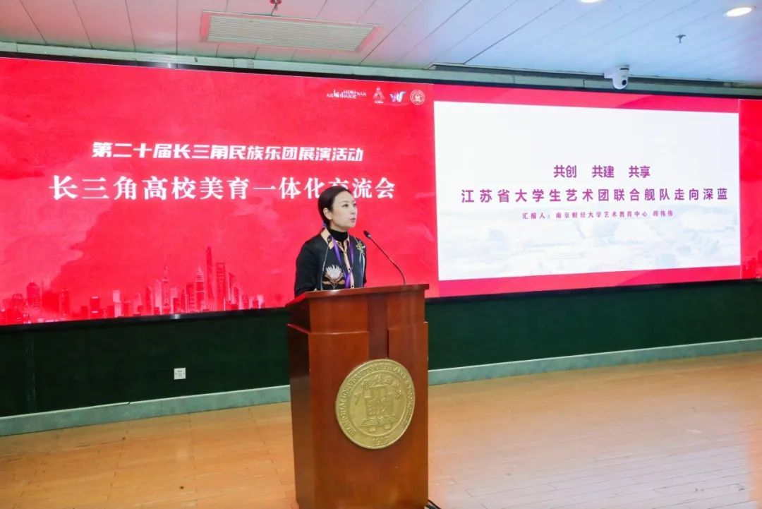 发言环节,来自江苏省教育厅等教育主管部门和上海交通大学、上海财经大学、上海师范大学、苏州大学、南京财经大学、浙江师范大学、安徽医科大学等高校美育负责人先后围绕美育浸润探索、美育资源整合、美育跨界融合、美育智库建设等方面展开交流讨论。
