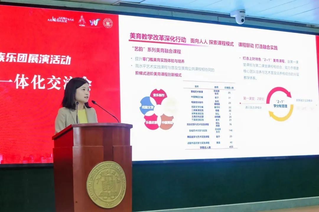 高校美育相关负责人纷纷介绍围绕美育浸润所开展的一系列行动。这些行动涵盖美育教学改革、艺术实践普及、校园文化营造和社会资源整合等方面,旨在通过美育教育提升学生的审美素养和创新能力。部分高校还分享了整合高校美育课程资源、汇合美育教学名师、推进美育学科融合的经验,构建校际间美育大课堂的实践案例,以及实现全员、全程、全域美育浸润。还有高校以课程建设为基础,艺术实践活动为依托,全方位夯实美育筑基工程,使美育教育在跨学科土壤上结出丰硕果实。
