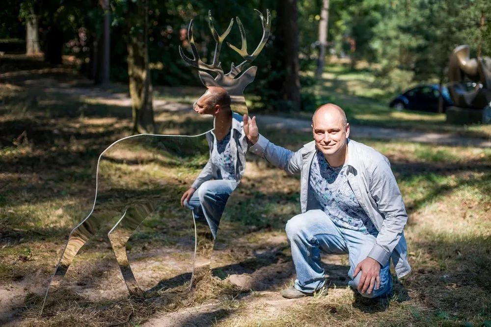 在德国不莱梅附近的沃尔普斯维德艺术村,田野里伫立着一些特别的巨型“剪影”,有低头沉思的男人、拿着气球的孩子,也有活泼的驯鹿、展翅的飞鸟……这一件件镜面材质的艺术品映照着山丘、森林、草场、溪流,随着自然光的改变和观看角度的不同而变化无穷;更神奇的是,当观者靠近时,镜面叠加了自己的影像,又变成了一件全新的作品。很多人来此拍照打卡,还将它们上传到海外社交媒体上。