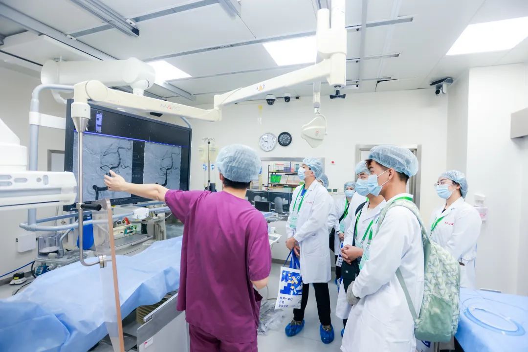 活动现场,青少年体验者来到市六医院DSA(数字减影血管成像)导管室和实训中心,领略介入手术的精妙之处。“利用DSA引导管方式,能实时显示导管或导丝在血管内推进的情况,清晰地看到血管分布图像,对于脑血管病、胸部血管系统、腹部血管系统的检查具有重要的诊断价值。一旦发现病灶,通过介入器材进行微创手术,精准直达病灶为患者进行对症治疗,安全高效、并发症少。”朱悦琦边演示介入模拟器,边为青少年体验者科普DSA手术原理及特点。“真的可以用细若游丝来形容,介入手术需要下绣花功夫,才能为患者疏通生命通道!”一名参与体验的学生感叹道。