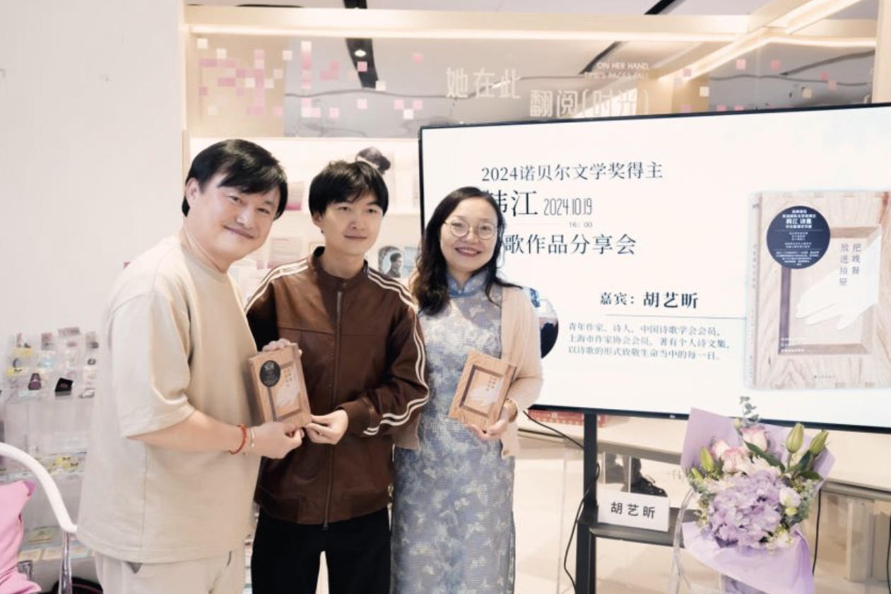 最近,上海书城五楼馨巢书屋迎来了一群诗歌爱好者,曾获“中融全国原创文学大赛”诗歌奖项的青年作家、诗人胡艺昕做客“韩江诗集分享会”,和读者展开一场诗意的精神碰撞。