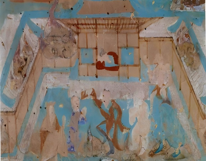 莫高窟第154窟北壁中唐桥上对称舞巾壁画