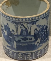 青花高仕对弈图笔筒(清代)