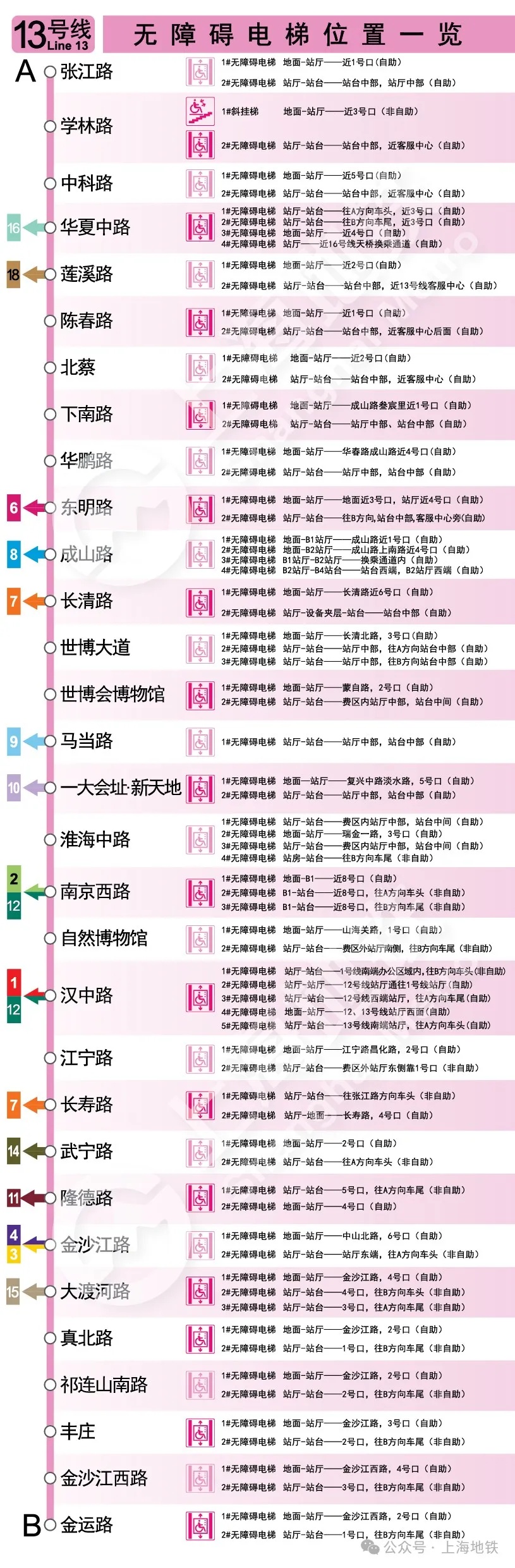 申通地铁集团介绍,近日,上海地铁更新了全网络各站点的无障碍设施信息,其中包括无障碍电梯及无障碍厕所,以备乘客不时之需。详见↓