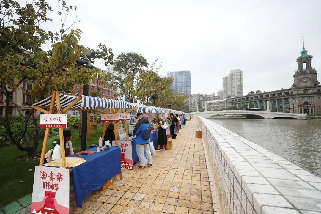 金秋十月,2024上海书展“淘书乐”樱花谷旧书市集于苏州河南岸亲水平台区域再次回归,打造集淘书、收购、展览、文创、讲座、互动体验等多种形式为一体的综合性市集。通过“可淘、可赏、可品、可打卡、可集章”等多彩的文化形式,深入挖掘沪上历史记忆和文化精粹,彰显阅读为城市带来的内涵与活力。这一次,书籍更多,亮点也更多,市民游客纷沓前来,在市集中流连忘返。