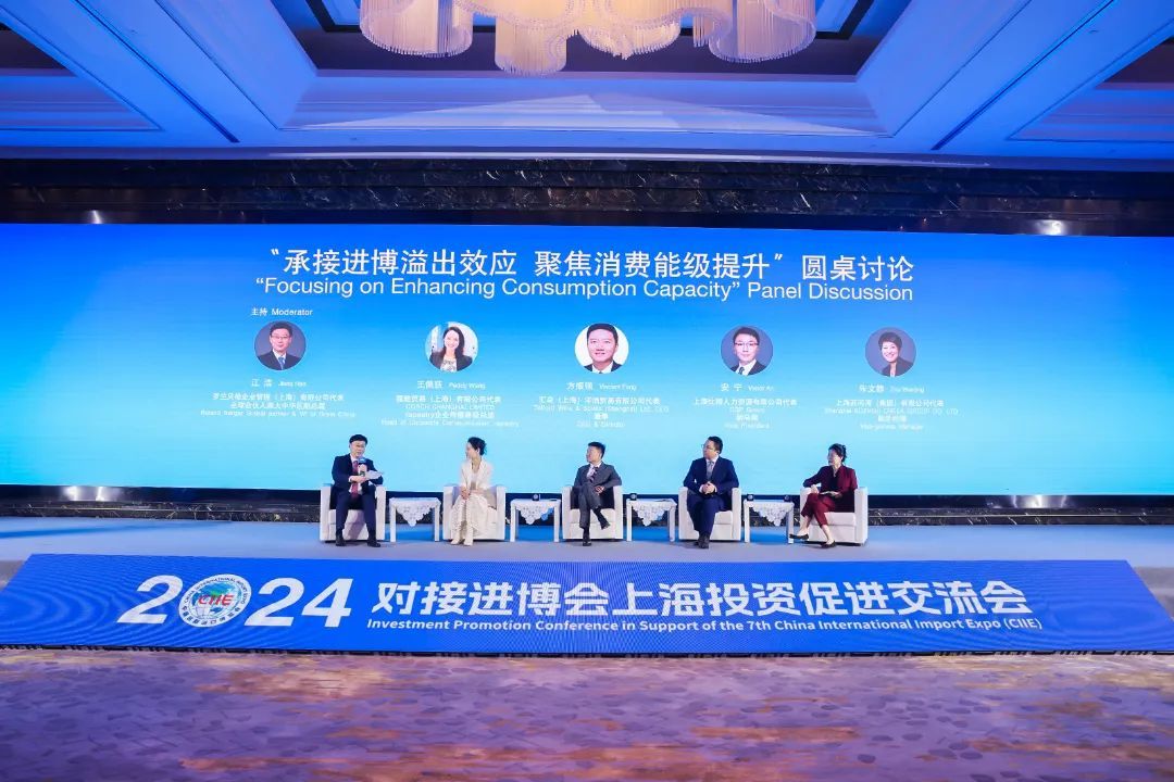 在罗兰贝格企业管理(上海)有限公司全球合伙人兼大中华区副总裁江浩的主持下,蔻驰贸易(上海)有限公司代表、Tapestry中国企业传播高级总监王佩荻、汇泉(上海)洋酒贸易有限公司CEO及董事方振强、上海仕卿人力资源有限公司副总裁安宁和上海苏河湾(集团)有限公司副总经理朱文静分别从外资企业、专业机构、园区等不同角度以“承接进博溢出效应 聚焦消费能级提升”为主题开展圆桌对话。