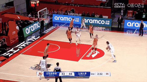 第二节开始后江苏队连得6分,以29比22领先,大鲨鱼及时暂停。此后沃特斯和威尔逊连续投中三分球,帮助本队以30比29反超,对手暂停。李添荣连中3个三分球,帮助客队保持微弱领先。上半场结束前,主队连中两个三分球,以51比50领先。