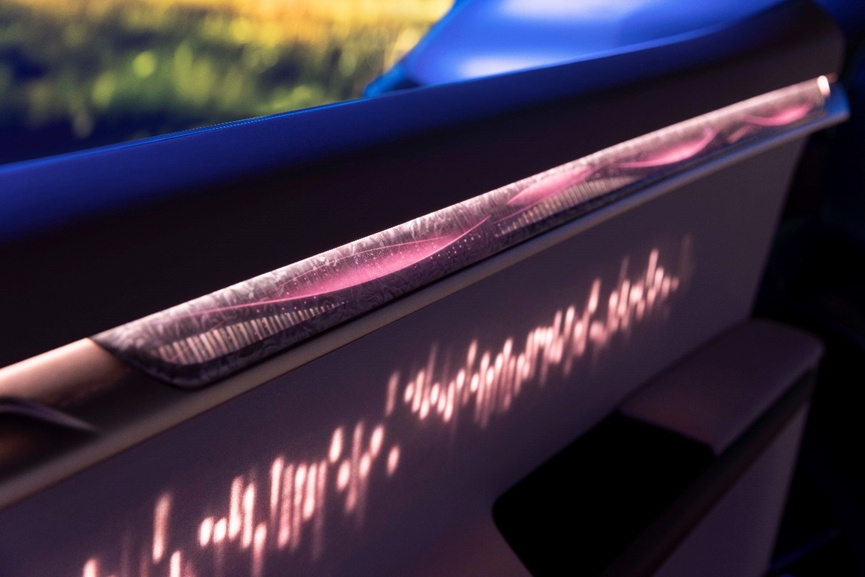 XiM25的仿贝母纹理超薄光导膜组,借由车规级光学膜片自带的微纳光学纹理,可呈现奢华感及精致感。通过厚度仅5mm的超薄光导膜组,实现多层高分辨率的纹理效果叠加,与传统导光板相比,厚度减少80%,打光结构总成体积减小50%。