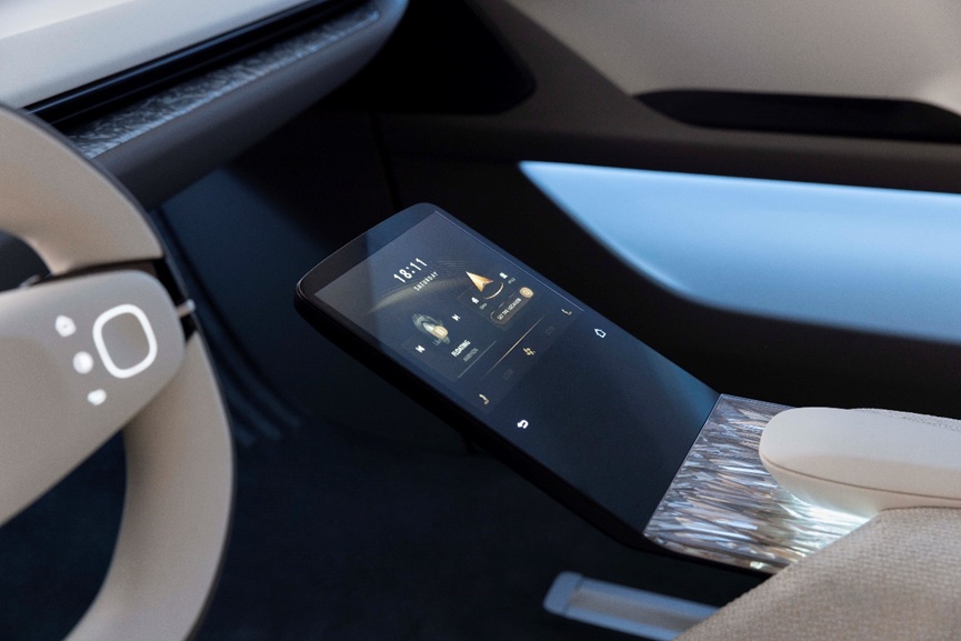值得称道的是,XiM25位于后排座椅中央的触控面板,用户交互界面可随时隐藏,能化解座舱多屏化趋势带来的审美疲劳及光污染。延锋大胆应用Heytech™ 随隐触控面板,融合塑料曲面盖板与触控反馈技术,实现特殊造型及自定义功能,令内饰与电子显示无缝融合。